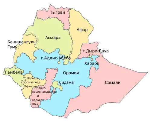 Эфио́пия (амх. ኢትዮጵያ), официальное название: Федерати́вная Демократи́ческая Респу́блика Эфио́пия (амх. የኢትዮጵያ ፌዴራላዊ ዲሞክራሲያዊ ሪፐብሊክ), ранее также была известна как Абисси́ния — государство в Восточной Африке, не имеющее выхода к морю (после отделения Эритреи 24 мая 1993 года).