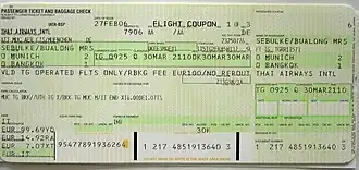 Авиабилет бумажном виде состоял из контрольного купона, отчётного купона, нескольких (от 1 до 4) полётных купонов, пассажирского купона и вкладыша.