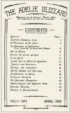 • Leane E. The Adelie Blizzard: the Australasian Antarctic Expedition’s neglected newspaper // Polar Record. — 2005. — Vol. 41, no. 216. — P. 11—20. doi:10.1017/S0032247404003973.