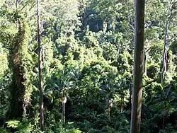 Флора прохладной Тасмании значительно отличается от флоры большой земли. Кроме типичных для Австралии эвкалиптов, на острове произрастает значительное число видов деревьев, родственных новозеландским и южноамериканским, в частности вечнозелёный южный бук (нотофагус)[58][59].