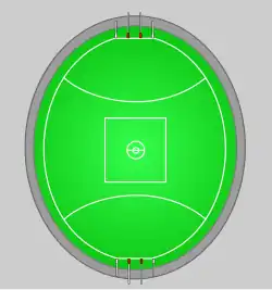 В каждой команде по 18 игроков, у каждого из них собственное амплуа. Поле овальное (нередко используются существующие поля для крикета), имеет довольно большие размеры: длина — 185 м, ширина — 155 м. Возле ворот находится 50-ярдовая зона, в которой не допускается атака на игрока, чисто получившего мяч. Мяч овальный, средний вес около 670 г. Матч состоит из четырёх периодов по 20 минут, в общей сложности 80 минут; учитывается только чистое игровое время. Разрешена жёсткая силовая борьба.
