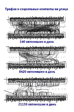 Массовая автомобилизация является фактором социальной изоляции, формирует экофобную структуру расселения, способствуя разрастанию городских агломераций. В условиях города частный автомобиль как транспортное средство означает крайне неразумное использование энергии и пространства. Реальным мотивом для его использования часто становятся не рациональные соображения, а «удовольствие от вождения», то есть смесь спортивных эмоций с радостью от повседневного социального самоутверждения. С точки зрения интересов общества для удовольствий такого рода гораздо лучше подходят не улицы, а личные и клубные пространства[24]. Господствующая логика автомобилизации требует устранения «препятствий» для движения, таких как пешеходы, светофоры, велосипедисты, различные формы уличного общественного транспорта, например, трамваи или троллейбусы. Результатами являются упадок уличной жизни, деградация городской среды и социальное отчуждение. Даже на сравнительно тихих улицах периодическое появление машин, движущихся с большой скоростью, создаёт впечатление опасности и прекращает игры детей на улице. Это приводит к сокращению контактов взрослых жителей улицы (особенно принадлежащих к разным поколениям), поскольку такие контакты часто возникают на почве присмотра за детьми[25].