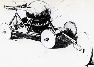 В 1769 году французский изобретатель Кюньо испытал первый образец машины с паровым двигателем[7], известный как «малая телега Кюньо», а в 1770 году — «большую телегу Кюньо». Сам изобретатель назвал её «Огненная телега» — она предназначалась для буксировки артиллерийских орудий.