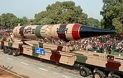 ![]() Пусковая установка с «Агни-III» на параде в День республики 26 января 2008 года | |