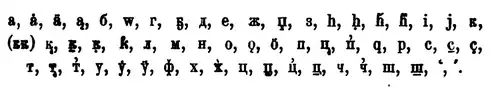 | Хъ хъ | Хь хь | ХӀ хӀ | Ц ц | ЦӀ цӀ | Ч ч | Чч чч | ЧӀ чӀ | Ш ш |