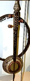 Пятиструнная кеманча XIX века (слева) и принадлежавшая азербайджанскому композитору Зульфугару Гаджибекову трёхструнная кеманча (справа). Музей истории Азербайджана | ||||||||||