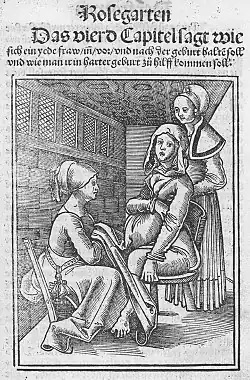 Только в XVI веке она вновь привлекает внимание учёных врачей: в 1513 году появилось первое, снабжённое рисунками, руководство по акушерству Евхария Ресслина «Цветник беременных женщин и акушерок»; за ним последовали сочинения Якова Руфа в Цюрихе (1553), Вальтера Рейфа в Страсбурге (1561).
