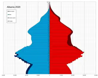 Алба́ния[5] (алб. Shqipëria), полная официальная форма — Респу́блика Алба́ния[6] (алб. Republika e Shqipërisë [ɾɛpuˈblika ɛ ʃcipəˈɾiːs]), — государство в западной части Балканского полуострова. Население, по данным Института статистики Албании на 1 января 2022 года, составляет 2 793 592 человека[2], территория — 28 748 км². Занимает 139-е место в мире по численности населения и 139-е по территории.