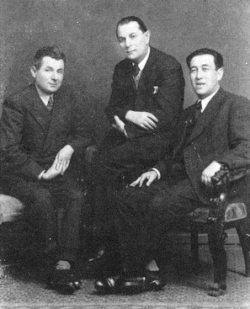 Слева направо: писатели Мойше Альтман, Янкев Штернберг и Шлоймэ Бикль