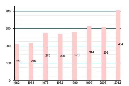 | 1962 | 1968 | 1975 | 1982 | 1990 | 1999 | 2004 | 2006 | 2009 | 2011 | 2012 |