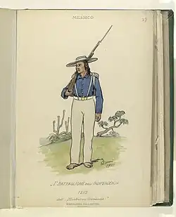 Регулярная армия республиканцев состояла преимущественно из индейцев. Доля индейцев среди высшего командного состава была также велика[33]. Народное сопротивление было преимущественно партизанским. Партизаны играли решающую роль в 18631866 гг. Регулярная армия в этот период также действовала партизанскими методами. Такими соединениями были «армия центра» и армия генерала Порфирио Диаса[34]. Партизанскими частями командовали в основном кадровые офицеры, но встречались также и командиры из числа штатских людей. Среди руководителей партизан выделялись Рамон Корона, Николас Ромеро, Николас Регулес, Висенте Рива Паласио[35].
