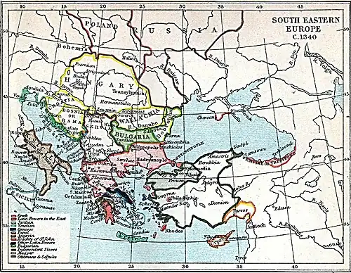 Тем временем балканские государства решили использовать смуты в Византии. В августе 1322 года болгарский царь Георгий II Тертер вторгся в северную Фракию и захватил её вместе с городом Филлиполь[3]. Однако Андроник III разбил болгар при Адрианополе и вернул себе северную Фракию. После смерти Георгия (1323) византийцы начали широкомасштабное наступление на юге Болгарии и полностью захватил её вместе с важнейшими портовыми городами (Месемврия, Сливен и Созополь)[3][5].