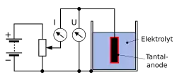 Например, при анодировании алюминиевых сплавов деталь погружают в кислый электролит (водный раствор H2SO4) и соединяют с положительным полюсом источника тока. Однако, сильно упрощённые представления о том, что выделяющийся при этом кислород взаимодействует с алюминием, образуя на его поверхности оксидную плёнку — мало соответствуют реальному механизму электрохимического анодирования.