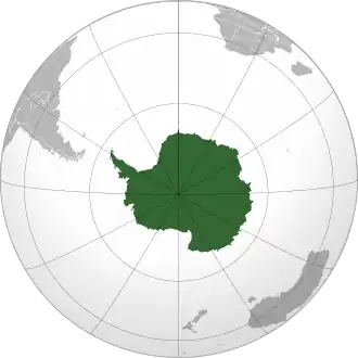 Антаркти́да (от греч. ἀντί — «против» и ἄρκτος — «Медведица», отсюда вообще — «север»[1]) — континент, расположенный на самом юге Земли[1]. Центр Антарктиды примерно совпадает с Южным географическим полюсом. Омывается Атлантическим, Индийским и Тихим океанами. С 2000 года воды, омывающие Антарктиду к югу от 60° ю. ш., по решению Международной гидрографической организации называются Южным океаном[2][3].