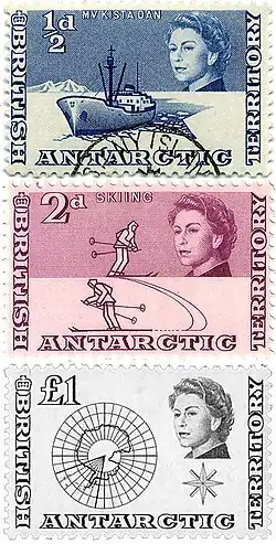 - ↑ The Falkland Islands Philatelic Bureau: British Antarctic Territory (англ.). Дата обращения: 19 июня 2013. Архивировано 19 июня 2013 года.