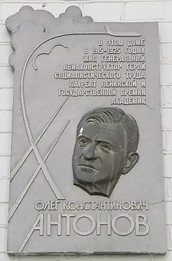 - В Киеве именем О. К. Антонова названа улица. На доме, в котором он жил, установлена мемориальная доска. Также имя О. К. Антонова носит грузовой аэропорт.