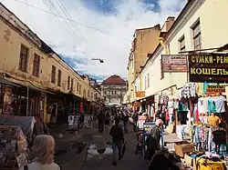 Значительная часть торговцев были выходцами из Ярославской губернии. Они контролировали деятельность фруктовой, чайной, винной и рыбной бирж[33]. Ввиду отсутствия складов на товарной станции Николаевской железной дороги и за неимением кладовых предназначенные для продажи фрукты хранились прямо на рынке под открытым небом[34].