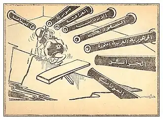 - 1949—1955 — «партизанская война» против Израиля с территорий, оккупированных Египтом и Иорданией, и Сирии[21][22][23]