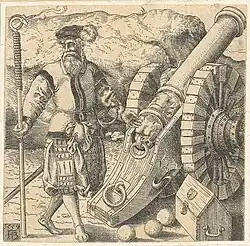 Канонир. Гравюра из альбома Франца Исаака Брюна «Солдаты» (1559)