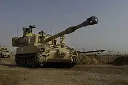 Артилле́рия (через фр. artillerie[1][2] (или итал. artiglieria[1]), старофранц. artillier — «снабжать орудиями»[2][3], от лат. artillum — «снаряд, орудие»[2], однокоренное слово — «артист»[2]):