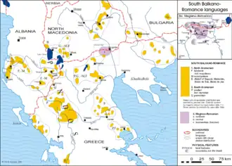 - 1 2 3 Коряков Ю. Б. Приложение. Карты. 6. Южные Балканы // Языки мира. Романские языки. — М.: Academia, 2001. — ISBN 5-87444-216-2.