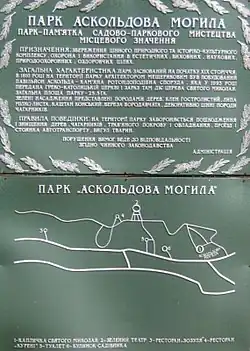 - ↑ Проценко Л. А. Некрополь «Аскольдова могила» в Киеве // Памятник культуры. Новые открытия: Ежегодник. 1988 — Москва: Наука, 1989. — С.499