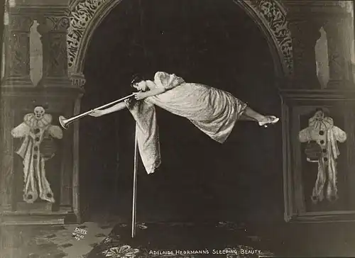 17 января 1921 года в мюзик-холле «Эмпайр» Финсбери-Парка знаменитый фокусник, работавший под псевдонимом П. Т. Сэлбит (англ. P. T. Selbit), первым, как принято считать, продемонстрировал трюк с распиливанием женщины. Его успех окончательно закрепил при постановке иллюзий использование сюжета «дева в беде» и вообще популярность эффектных девушек в роли ассистентов[3]:292.