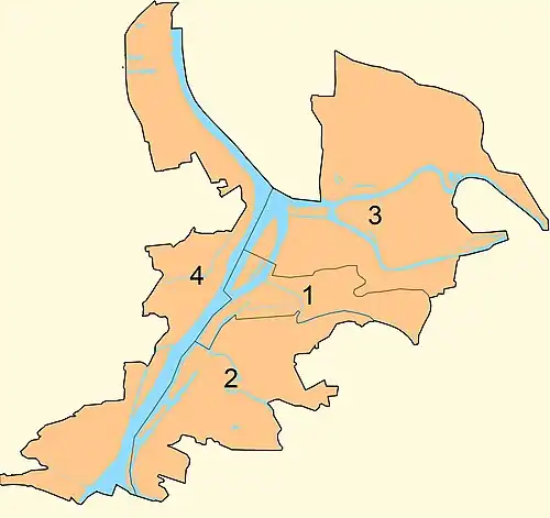 | Внутреннее деление | 4 района | ||||