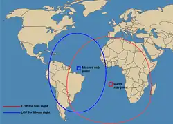 Проводятся измерения высоты двух разных светил (в сумерках — двух звёзд/планет или одной звезды/планеты и Луны; днём — Солнца и Луны). Для каждого измерения записывается его время. Точки земной поверхности, которым соответствуют измеренные высо́ты этих двух светил в моменты измерения, образуют две окружности (по одной для каждого светила), называемые «линиями положения» (или «кругами равных высот»). Точки пересечения линий положения и являются искомым местонахождением наблюдателя (этих точек — 2, но обычно они достаточно далеки друг от друга, так что неопределённости не возникает).