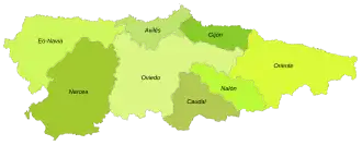 С юридической точки зрения Астурия разделена на 18 судебных округов, с судами первой инстанции в столице каждой из них.