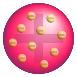 Модель Томсона была опровергнута в 1909 году его учеником Э. Резерфордом, который предложил планетарную модель атома, с находящимся в центре массивным положительным плотным ядром, вокруг которого, как планеты вокруг Солнца, летают электроны, число которых в нейтрально заряженном атоме таково, чтобы их суммарный отрицательный заряд компенсировал положительный заряд ядра. Г. Мозли выяснил, что заряд ядра увеличивается от одного химического элемента к следующему на одну элементарную единицу заряда, равную заряду электрона, но с противоположным знаком, а численно заряд атомного ядра, в единицах элементарного заряда, равен порядковому номеру элемента в периодической системе.