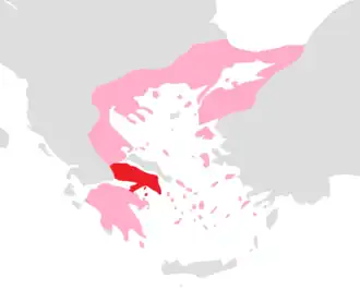 Герцогство Афинское занимало относительно небольшую территорию. Помимо Аттики и Беотии, к владениям афинского герцога относилась часть Пелопоннеса (города Аргос, Навплий, Дамалу)[5]. Из-за этого он долгое время являлся вассалом князя Ахайи.