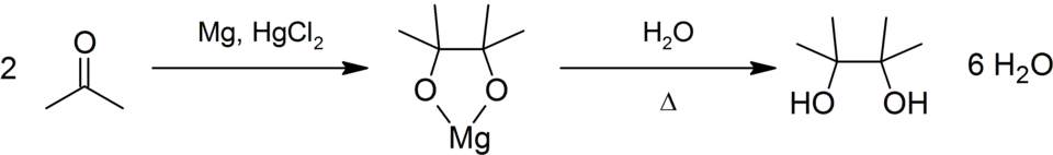 Восстанавливается амальгамами магния или цинка до пинакона: