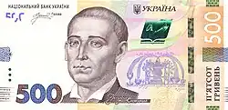 - ↑ В 2004 году была отпечатана и введена в обращение новая банкнота в серо-зелёных и розоватых тонах, однако почти сразу от угрюмого серого тона было решено избавиться, заменив его на национальные жёлтые и синие цвета, без изменения рисунка. Новая сине-желтая гривна появилась в 2006 году