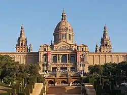 Сверху вниз, слева направо: Саграда Фамилия, Национальный музей искусства Каталонии, Триумфальная арка, Каса-Мила, парк Гуэль, панорама города