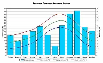 Климат Барселоны — субтропический. Самыми холодными месяцами являются январь и февраль (средняя температура около +10 °C), самыми жаркими — июль и август (средняя температура около +25 °C). Наибольшее количество осадков выпадает в октябре (около 90 мм); наименьшее — в июле (около 20 мм).