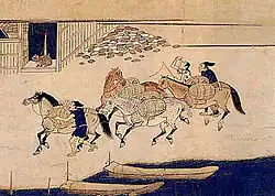 Перевозчики басяку («Иллюстрированные переводы монастыря Исияма», XIV век)