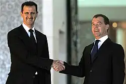 Баша́р Ха́фез аль-А́сад (араб. بشار حافظ الأسد; род. 11 сентября 1965[4][5][…], Дамаск, Баасистская Сирия[6]) — сирийский государственный, политический и партийный деятель. 18-й президент Сирии (17 июля 2000 — 8 декабря 2024), верховный главнокомандующий вооружёнными силами Сирии и секретарь сирийского регионального отделения партии Баас. Сын предыдущего президента Хафеза Асада, правившего страной с 1971 по 2000 год. Имеет звание маршала.