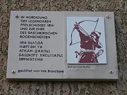 Мемориальная доска башкирским лучникам на фасаде здания в Шварце