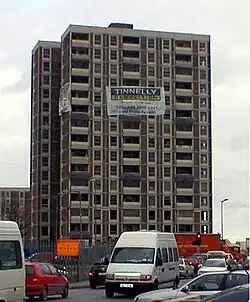 | Башня Пирса | 1 | Построена в 1966 году. Башня была наполовину построена, когда началось строительство следующей. | 1 | Разрушена в 2004 году техникой. Первоначально планировалось снести башню управляемым взрывом, но уже было построено много сооружений в непосредственной близости от объекта, и от плана было решено отказаться. В связи с небольшой задержкой, было решено провести традиционный ирландский день поминовения (Wake), участником которого была башня Пирса и её бывшие жители. Организатором мероприятия стала компания Axis Arts[3]. | ||