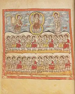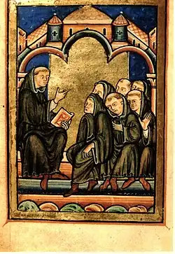 Учительство св. Кутберта. Миниатюра из рукописи XII века Жития св. Кутберта, написанного Бедой