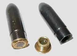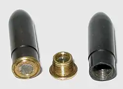 Два безгильзовых патрона Герасименко, у одного вывинчена капсюльная втулка
