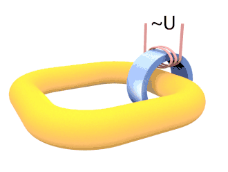 На стеклянной или кварцевой колбе располагаются один или больше магнитопроводов с первичной обмоткой, на которые подается переменное напряжение высокой частоты (система аналогична трансформатору, где газовый разряд является вторичной обмоткой). Электронный блок, вырабатывающий высокочастотный ток может быть выполнен как отдельное устройство или находиться в одном корпусе с колбой. Состав газа и люминофора аналогичен обычным газоразрядным лампам.