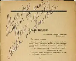 - ↑ Тинченко Я. «Белая гвардия» Михаила Булгакова.