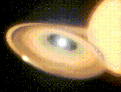 Переменная звезда Мира (ο Кита) в ультрафиолетовом диапазоне. Виден аккреционный «хвост», направленный от основного компонента — красного гиганта к компаньону — белому карлику