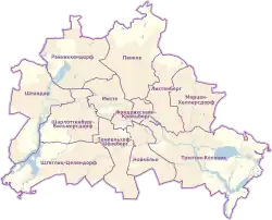 Город Берлин является одной из 16 земель в составе ФРГ и административно подразделяется на 12 административных округов (нем. Bezirk) и 97 районов (нем. Ortsteil), входящих в них.