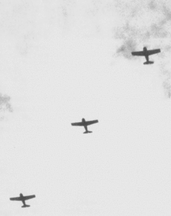 Дым поднимается от двух сбитых японских самолётовДым поднимается от двух сбитых японских самолётов