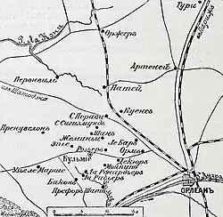 Между тем, Луарская армия генерала Луи д’ Орель де Паладина 9 ноября наступала с запада в общем направлении от леса Маршенуар на Орлеан; XV корпус вдоль реки Луары левым крылом на Ла-Ренардьер, XVI и сводно-кавалерийский генерала Рейо — севернее на Кульмье, с целью отрезать немцам, главную массу которых он считал находящимися у Орлеана, путь отступления на север[1].
