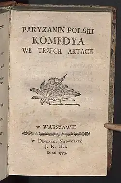 Комедия Францишка Богомольца «Польский парижанин». Обложка. Национальная библиотека, Варшава