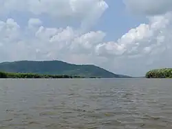 Слева по курсу вход в Серебряную протоку, вдали слева — Серебряный утёс.